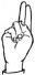 На ћирилици написано ЊЕГОСЛАВ МИСЛОПОЉАЦ састоји се из 18 слова [?]. Исписано ћириличном једноручном азбуком за глувонеме: